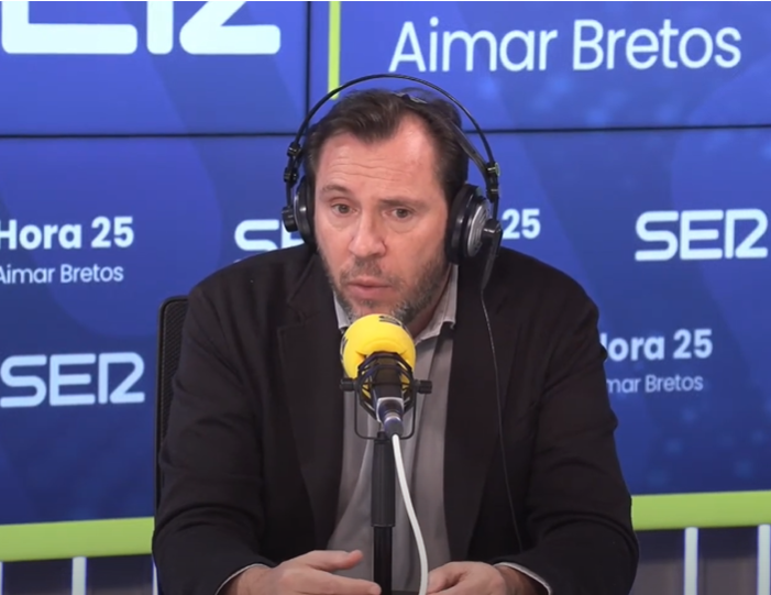 El ministro de Transportes y Movilidad Sostenible, Óscar Puente, ha sido entrevistado por Aimar Bretos en el programa Hora 25 de la Cadena SER