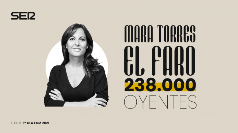 De madrugada, El Faro de Mara Torres se sitúa en 238.000 oyentes como el programa más escuchado de la madrugada.