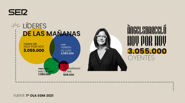 Hoy por Hoy ha incrementado 75.000 oyentes y alcanza una audiencia de 3.055.000 oyentes diarios, el mejor dato en los últimos 5 años. El programa de Àngels Barceló obtiene casi medio millón más que su principal competidor, Herrera en la Cope; y 1.700.000 oyentes más que el tercero en el ranking Más de Uno en Onda Cero.