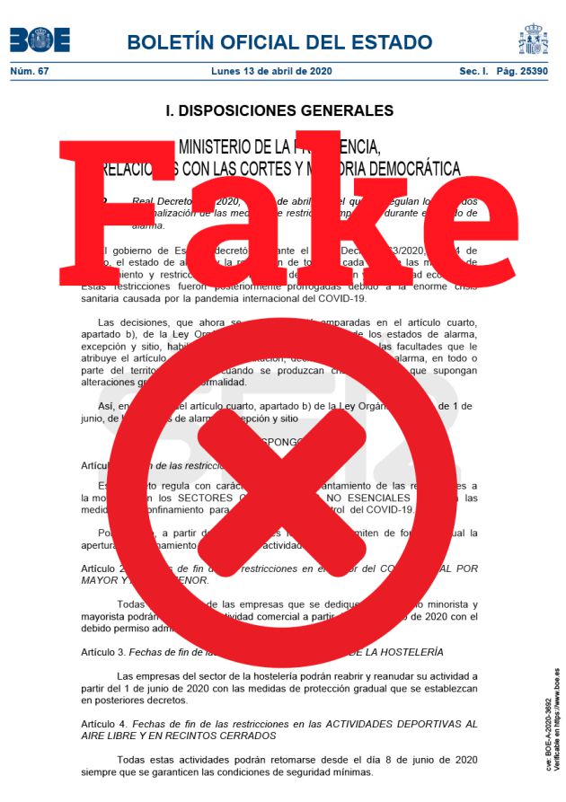 Está circulando en redes sociales un bulo con la marca de agua de la Cadena SER sobre una supuesta información que es rotundamente falsa. En ningún caso esta radio ha distribuido un documento en el que aparece una supuesta decisión del Gobierno, publicada en el BOE, sobre la eliminación de ciertas restricciones. Repetimos, es mentira, es un documento falso que no ha publicado la Cadena SER.