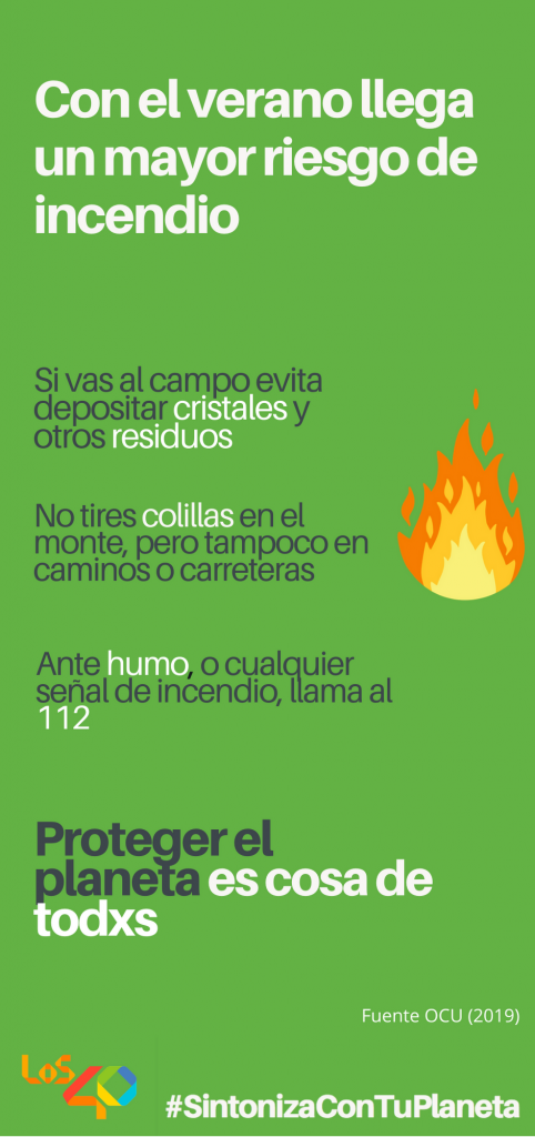 Así que durante estos meses de calor y vacaciones en LOS40, LOS40 Classic, LOS40 Urban y LOS40 Dance ofreceremos consejos sobre hábitos responsables con nuestro entorno. A través de infografías publicadas en las redes sociales, las emisoras irán recordando cómo debemos comportarnos en las playas para evitar que se llenen de residuos, en los bosques para que no tengan lugar incendios forestales o para que nuestros mares no se llenen de plásticos, entre otros aspectos que ayudarán a cuidar el planeta.