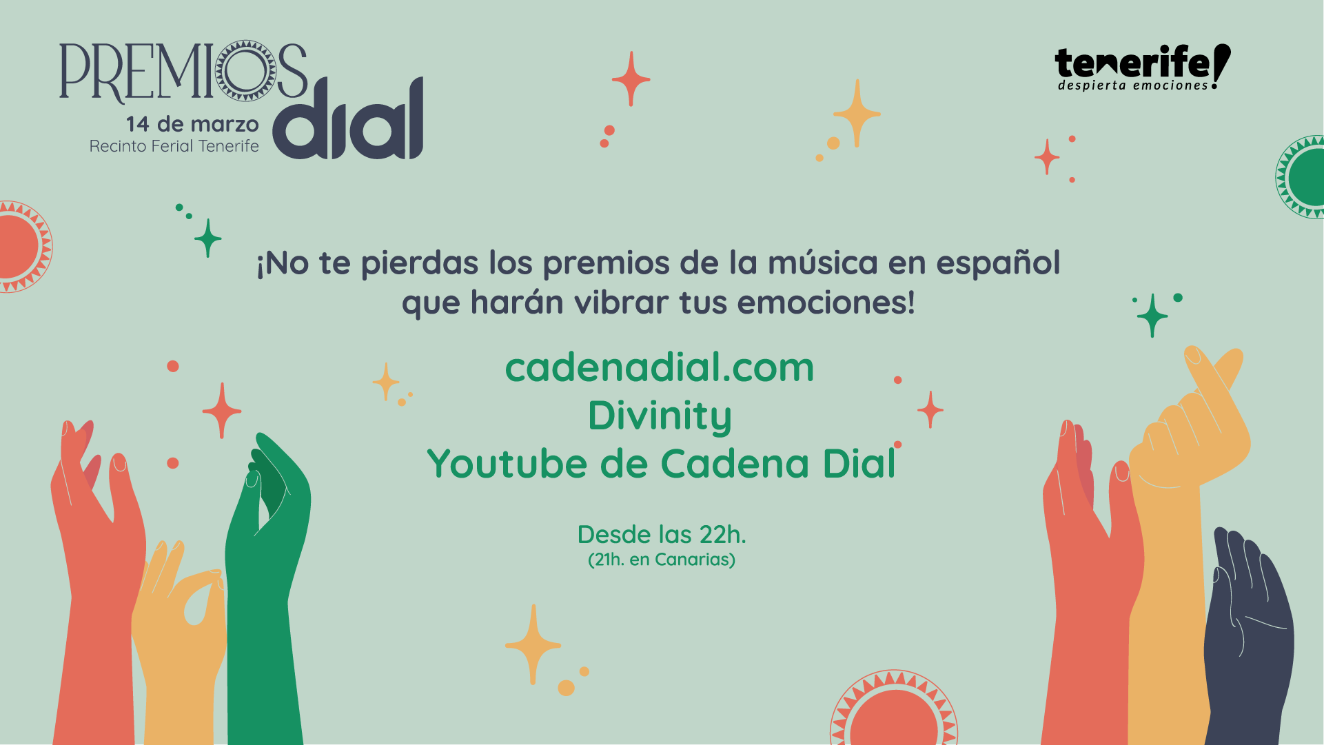 Hoy se han anunciado los ganadores y ganadoras de los Premios Dial Tenerife 2024 que un año más reunirán sobre un mismo escenario a las mayores estrellas de la música en español. Será el jueves 14 de marzo cuando se celebre en Santa Cruz de Tenerife el primer gran evento musical del año en nuestro país que será retransmitido a través de la web CadenaDial.com, por el canal de YouTube de Cadena Dial y en Divinity. Las últimas entradas para vivirlo en directo desde el Recinto Ferial de la isla canaria están disponibles en la página web de la emisora.