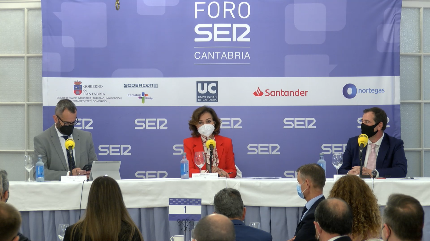 La vicepresidenta primera del Gobierno, Carmen Calvo, en el Foro SER Cantabria